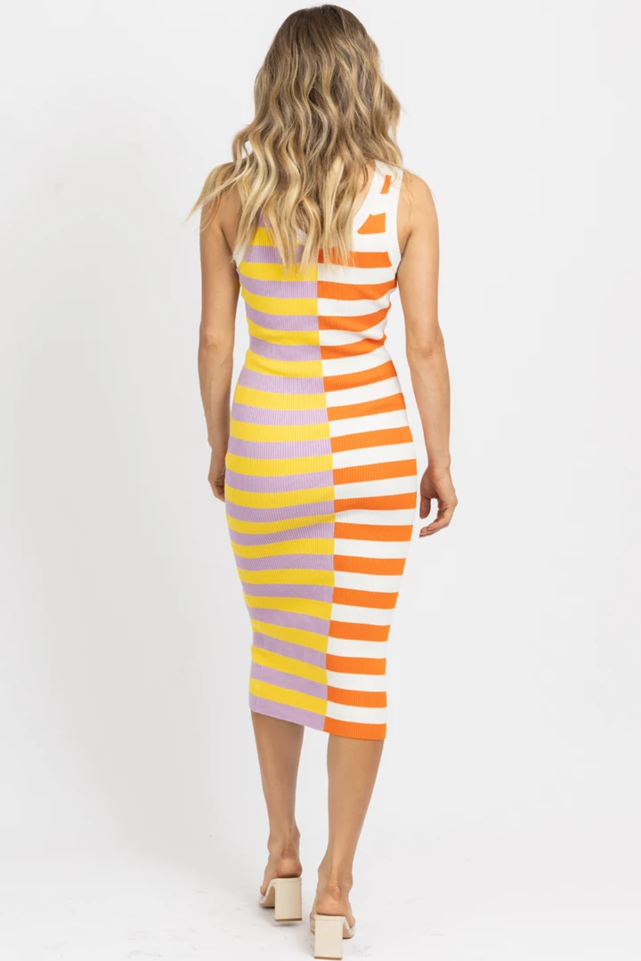 Knit, Color blocked, Striped, Midi length, Knit, Ribbed, Sleeveless