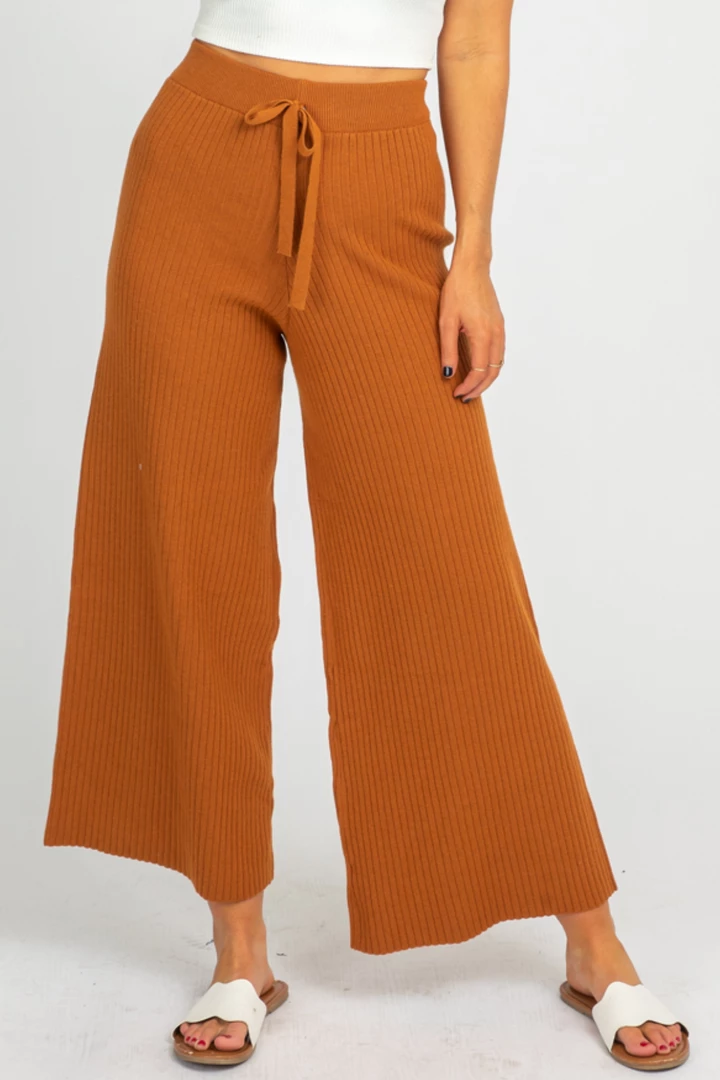 Rib knit flare pants, High rise, Drawstring, Sweater material