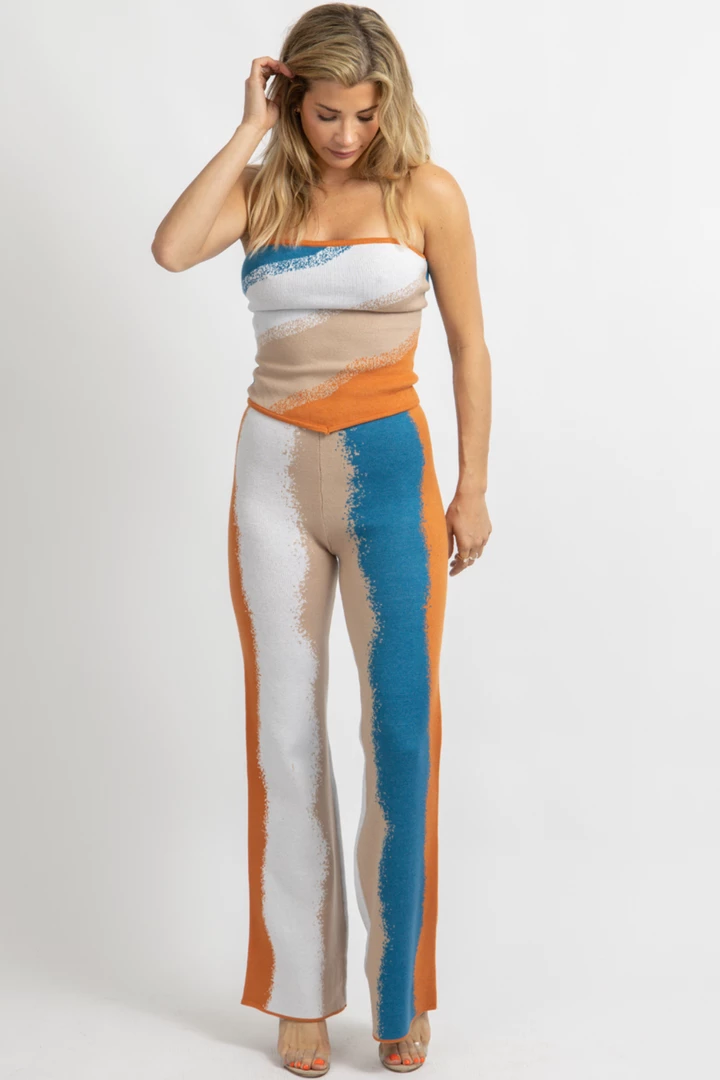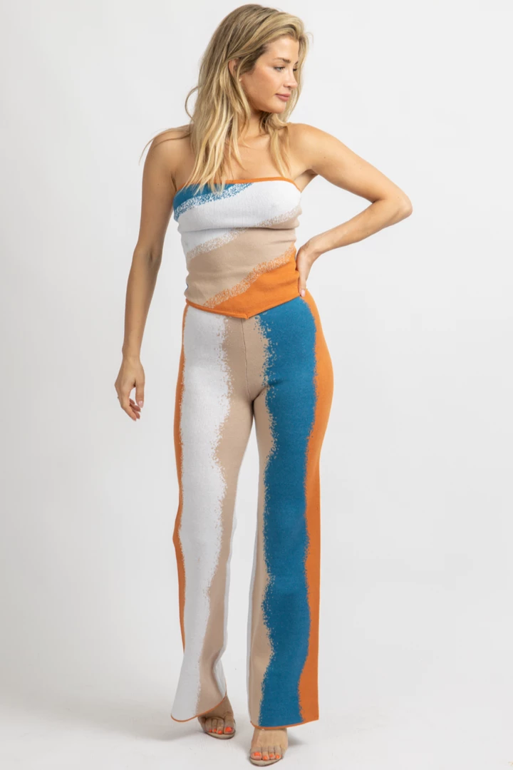 Sold together, Knit, Tube top, High rise pant, Abstract print