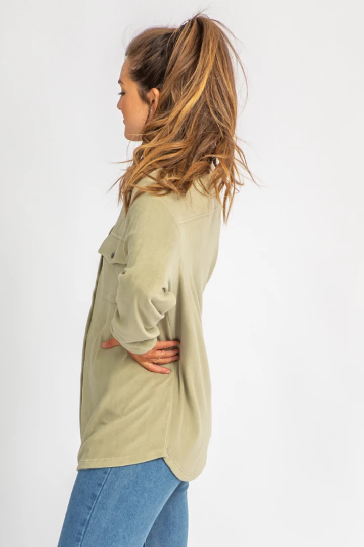 Relaxed fit, Fleece, Front buttons, Long sleeves, Collared, Front pockets
