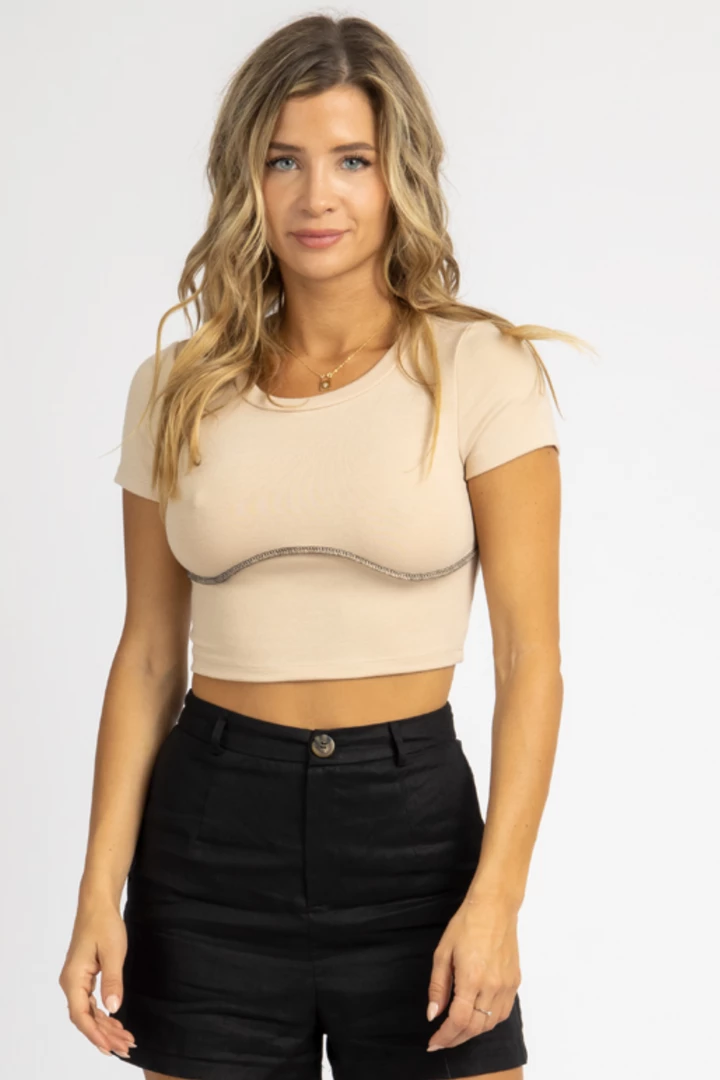 Exposed bust stitch detail, Cropped, Short sleeves