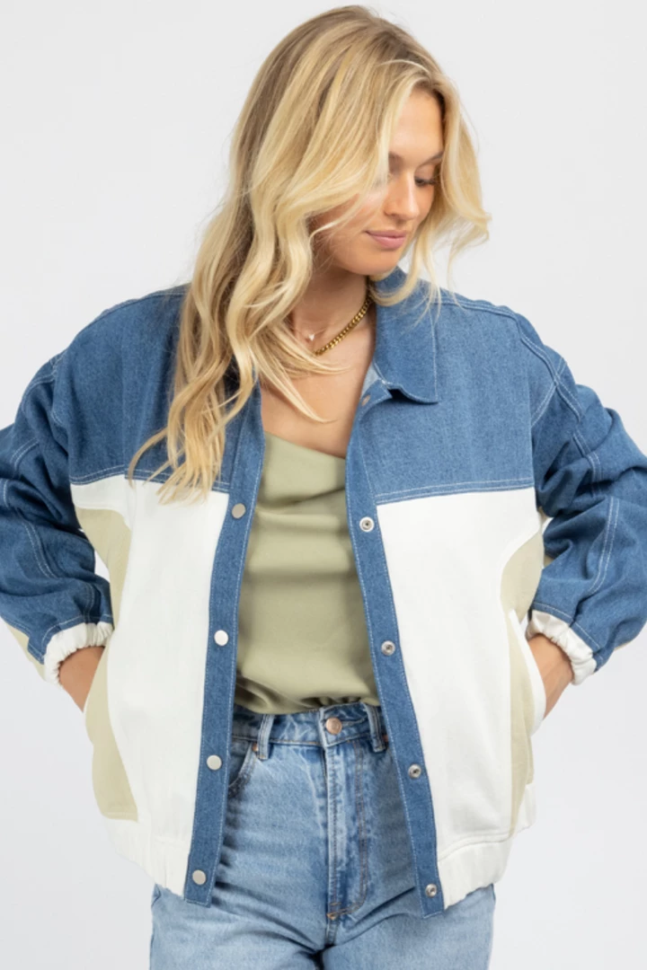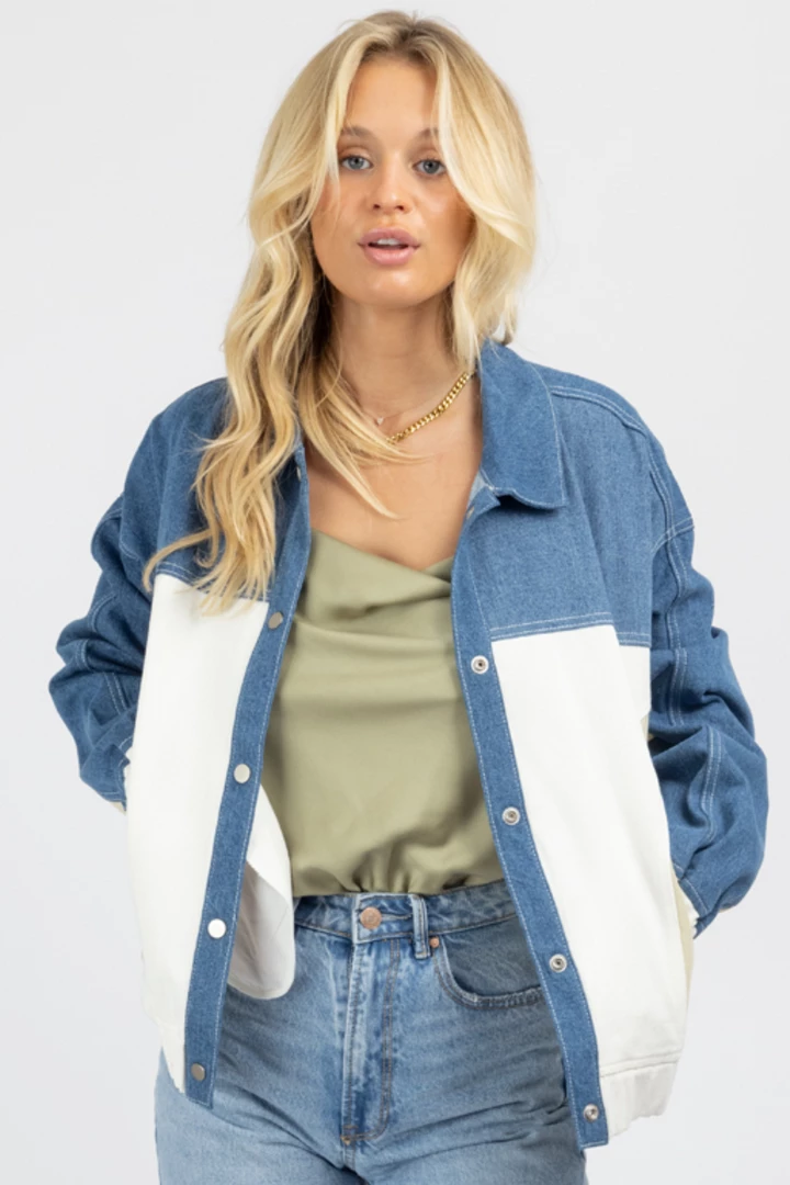 Oversized relaxed fit, Snap button front, Collared, Denim with neutral contrast