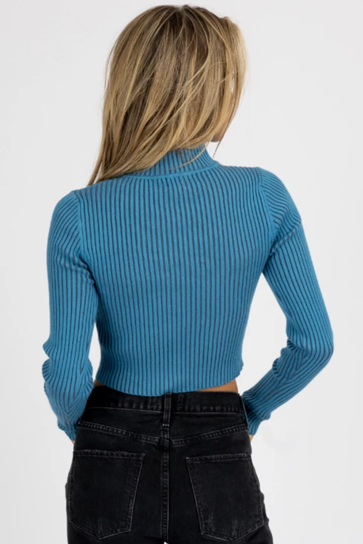 Mock neck, Long sleeves, Ribbed, Two tone, Cropped, Knit