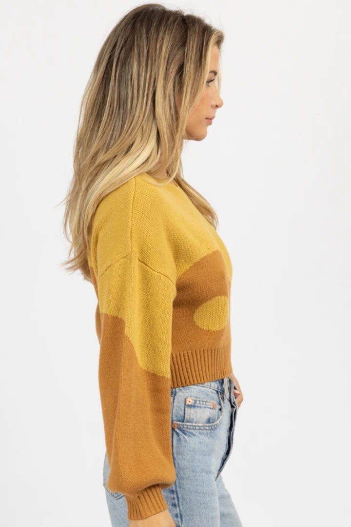 Knit, Long sleeves, Contrast knit, Yin + yang print throughout, Slight crop