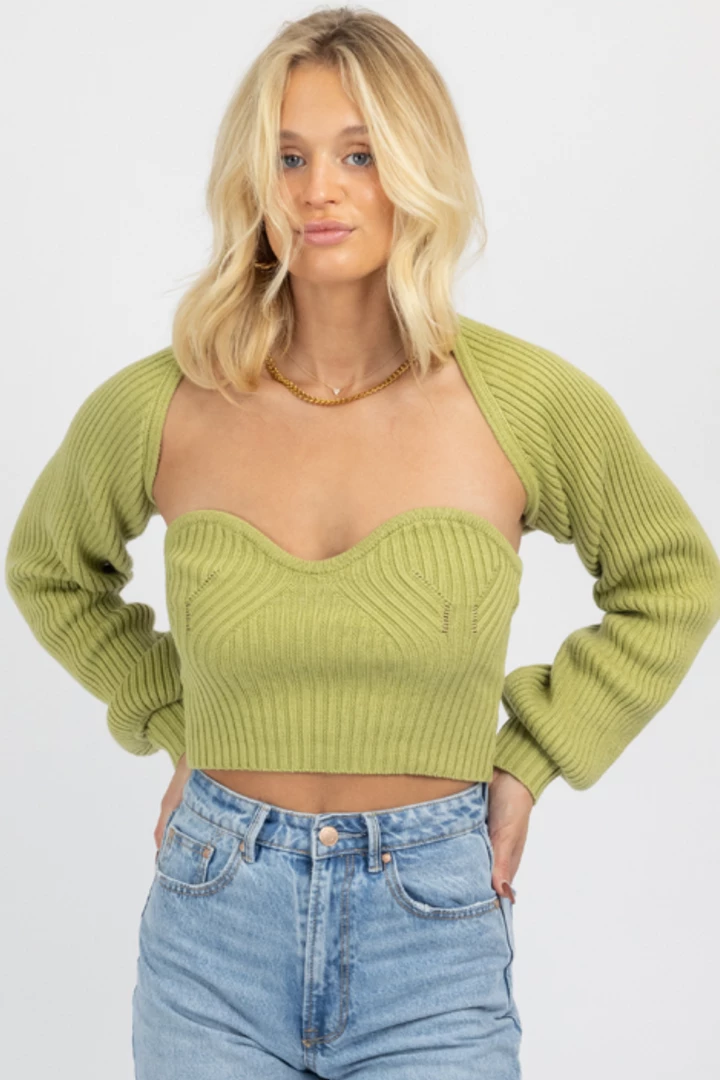 Sold together, Knit, Tube top with bolero arm warmer, Bustier neckine