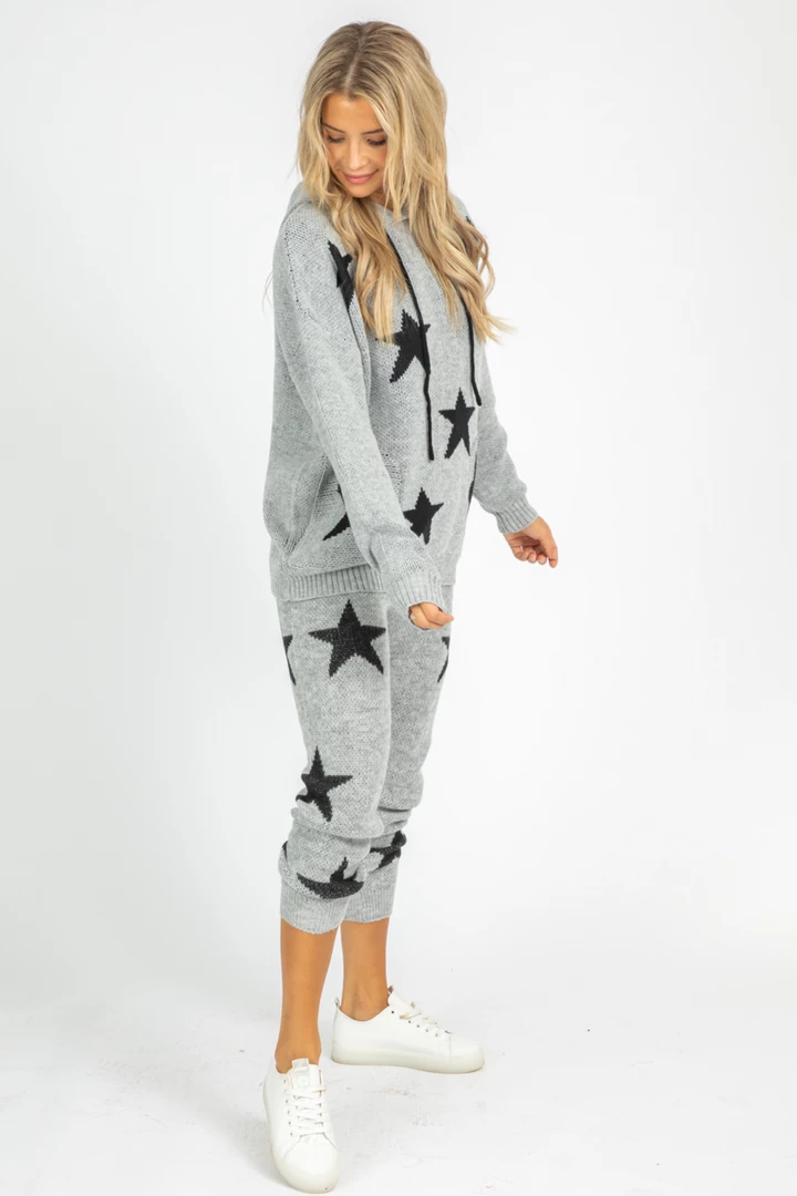 Black knit with contrasting white stars, Drawstring waist, Banded ankles