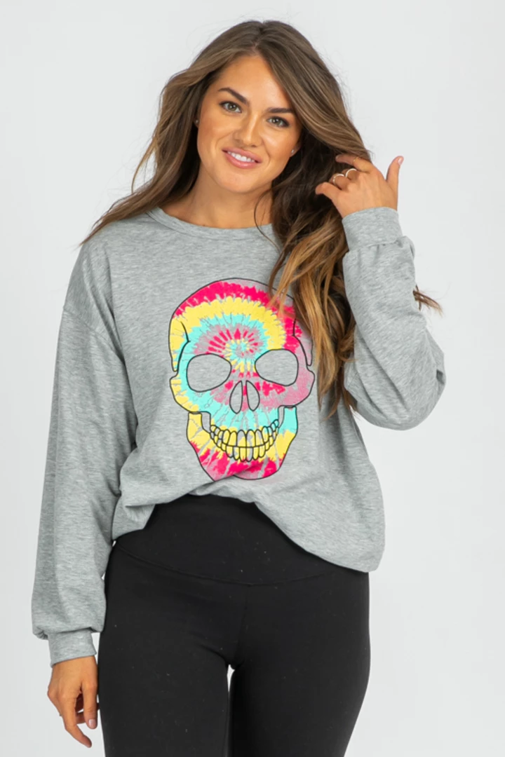 Relaxed fit, Crew neck, Tie dye graphic skull print