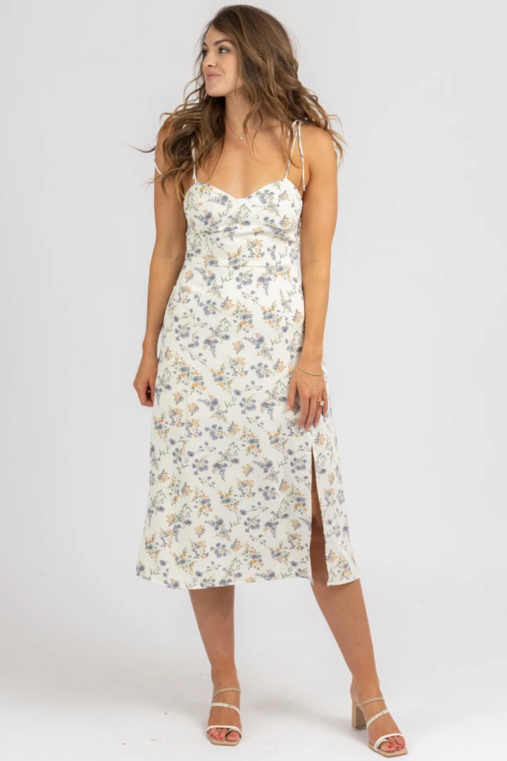 Bustier, Sweetheart neckline, Tie straps, Midi length, Smocked back