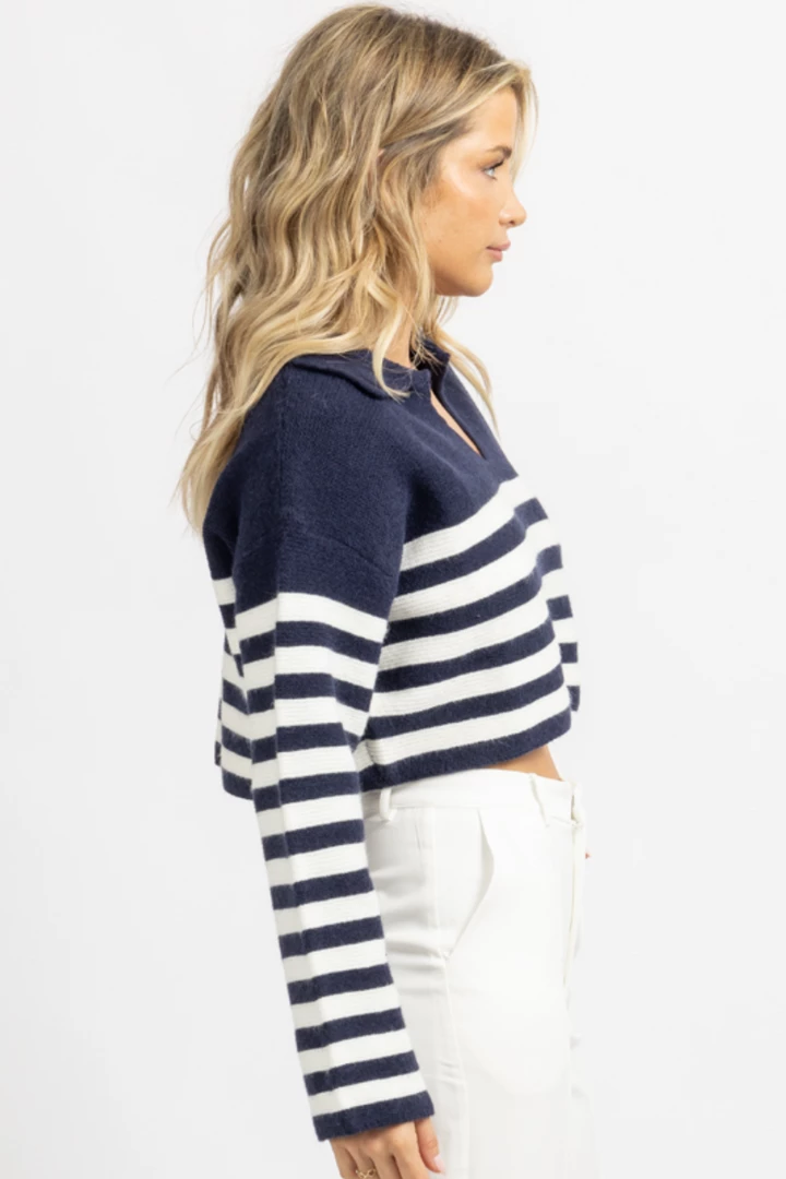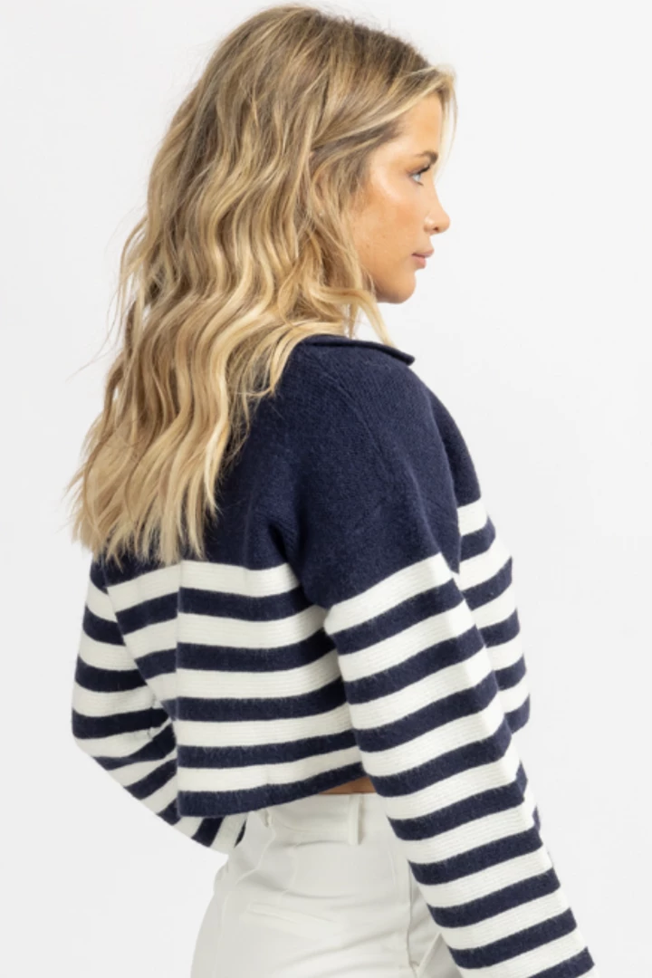 Relaxed fit, V-neckline, Striped, Slightly cropped, Long sleeves, Knit, Striped