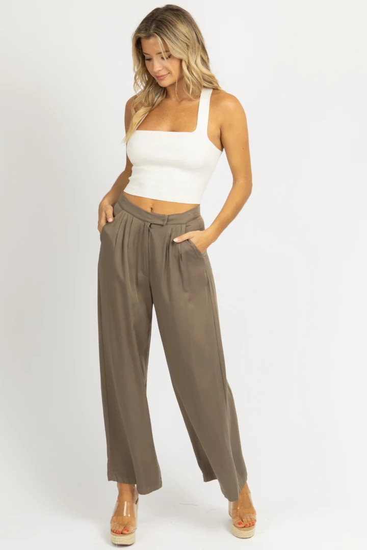 High waisted, Pleated, Slashed pocket, Hook and eye closure