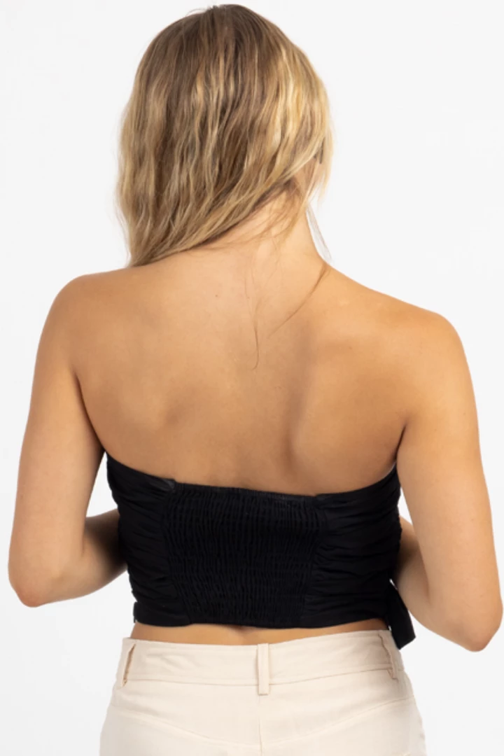 Sleeveless, Asymmetric ruffled front, Ruched, Cropped