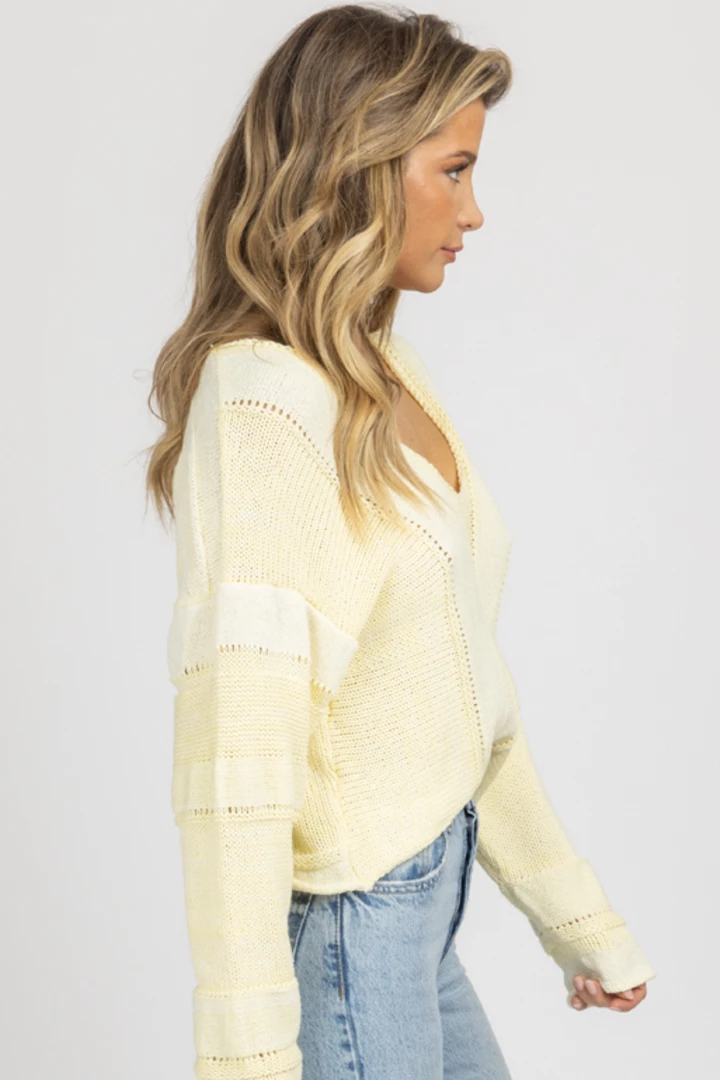 Relaxed fit, Knit, Multicolor blue, V-neck, Long sleeves