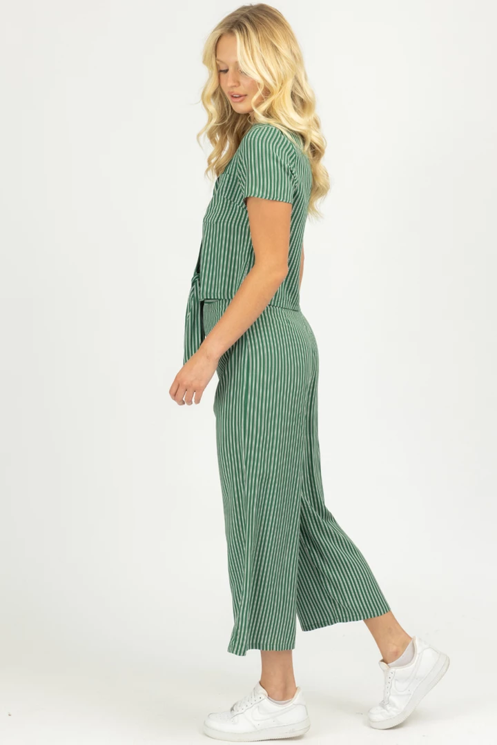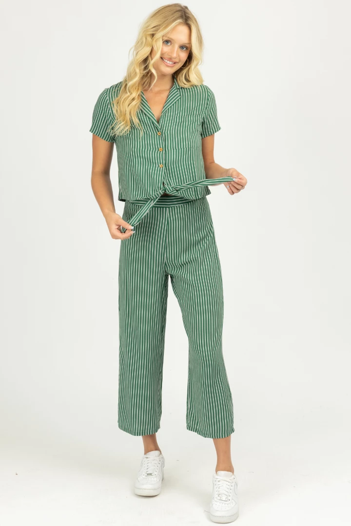 Sold together, Short sleeve top, Button front detail, Collared, Front pocket, Wide leg pants, Lined, Zippered