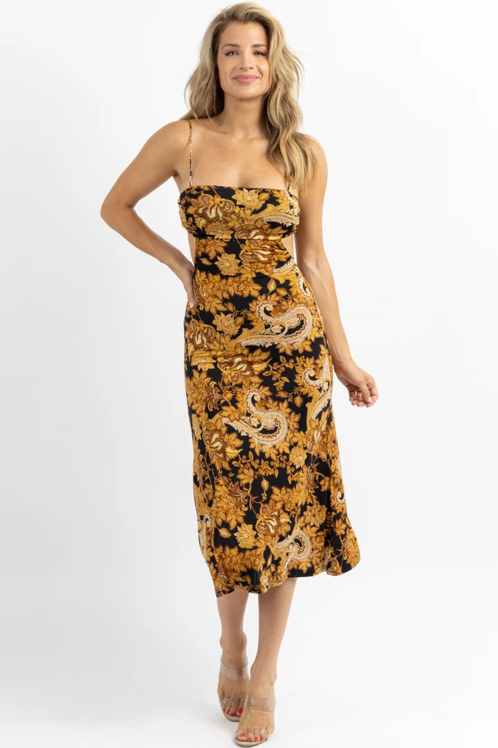 Midi dress, Sleeveless, Open back, Spaghetti straps