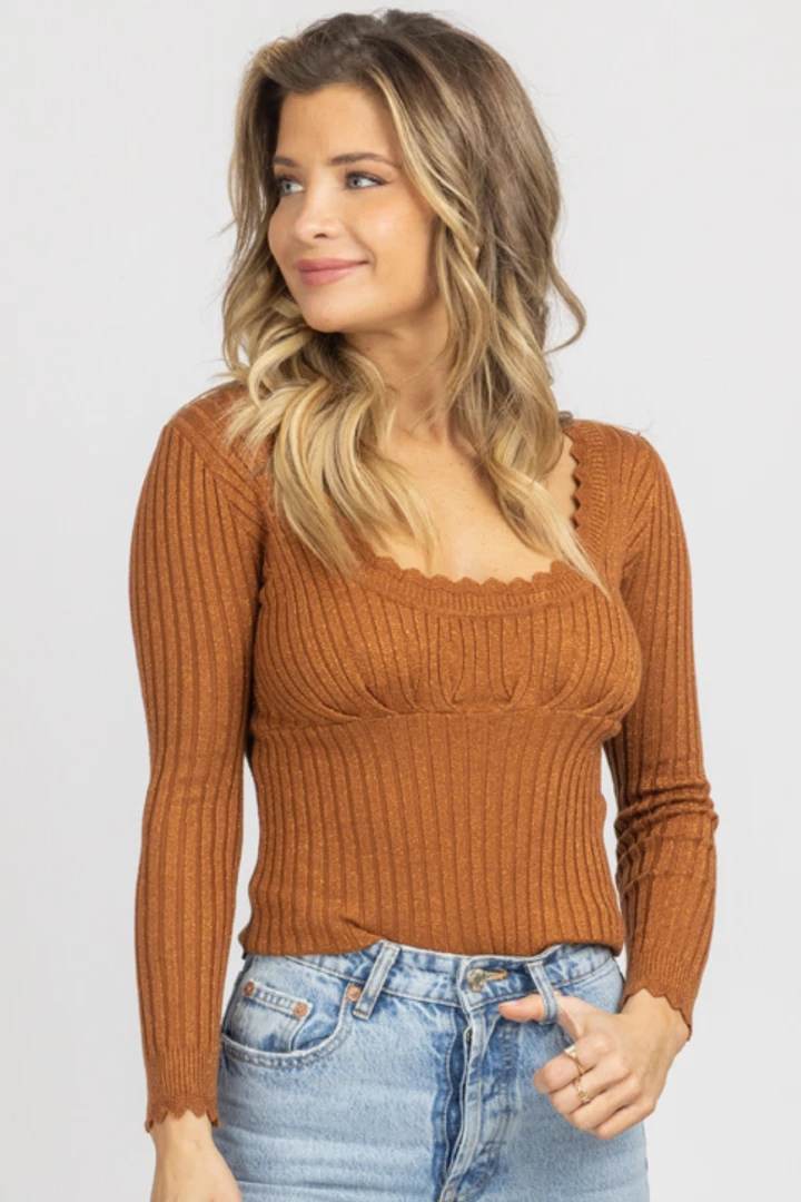 Long sleeves, U-neckline, Ribbed, Knit with shimmer detail