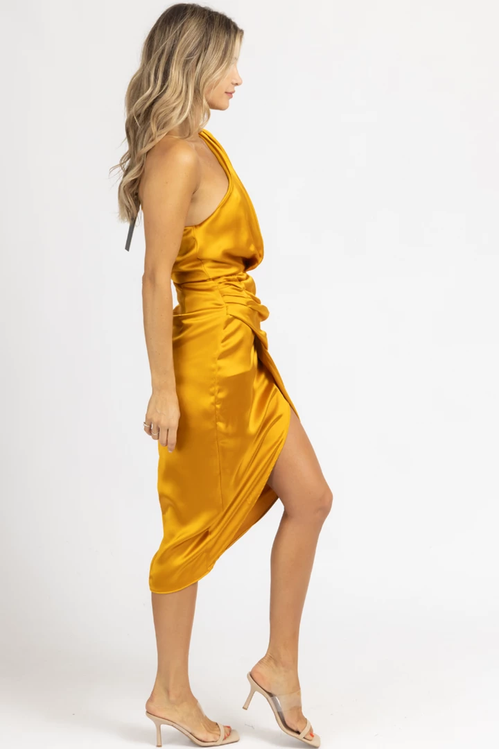 Sleeveless, Spaghetti strap, Color block, Midi length, Open back, Satin