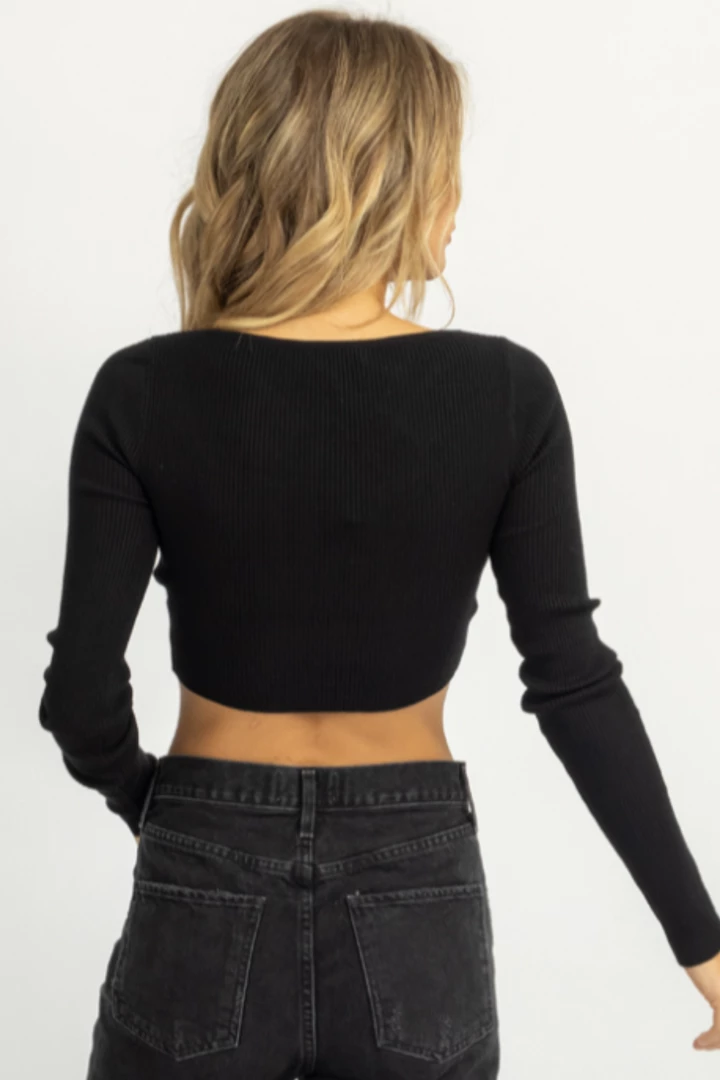 Squareneckline, Long sleeves, Ribbed, Triangle front hem, Cropped
