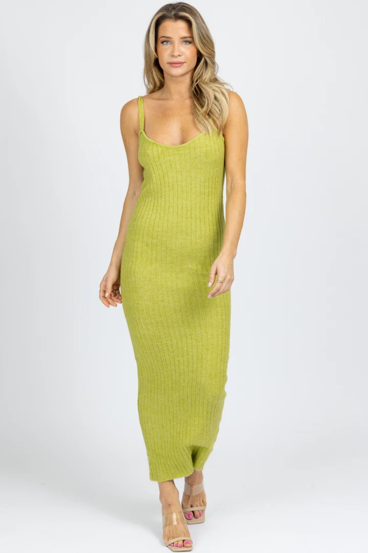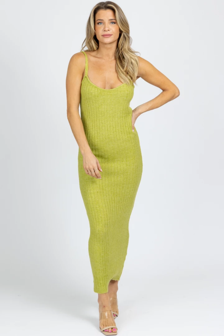 Knit, Ribbed, Midi length, Fitted, Spaghetti straps