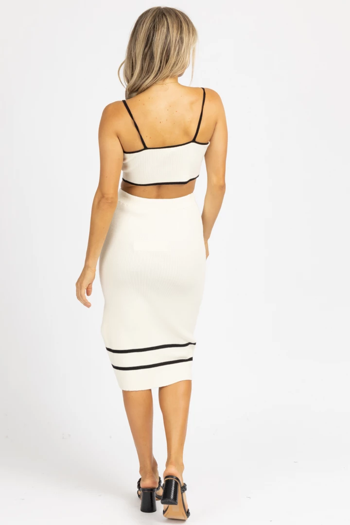 Sold together, Cropped cami tank, Midi skirt, Knit, Contrast stripe, Straight neck