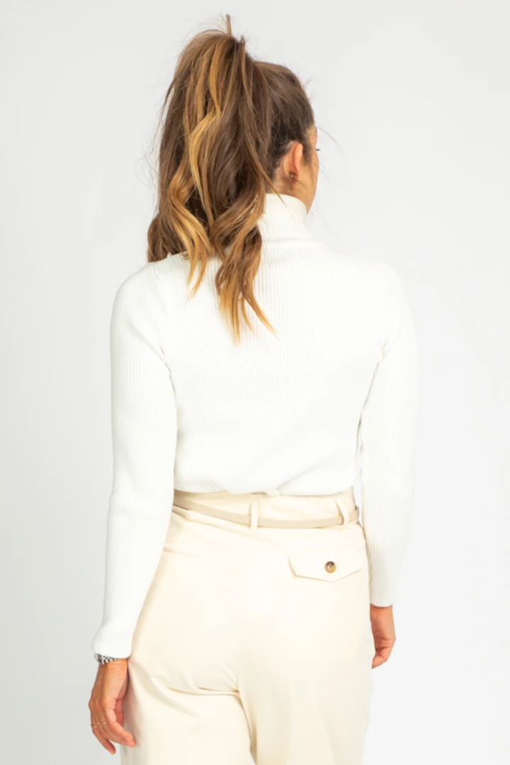 Long sleeved turtleneck, featuring a ribbed texture and neckline detail stitching