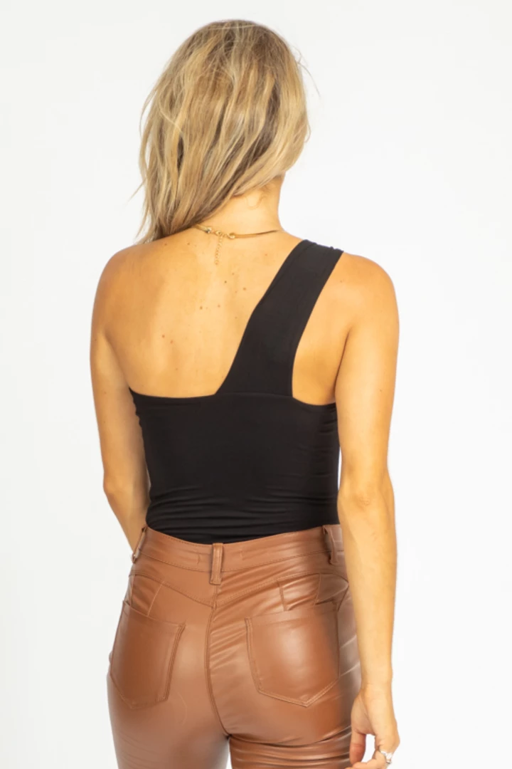 O-ring one shoulder bodysuit, Snap closure, Cheeky bottom