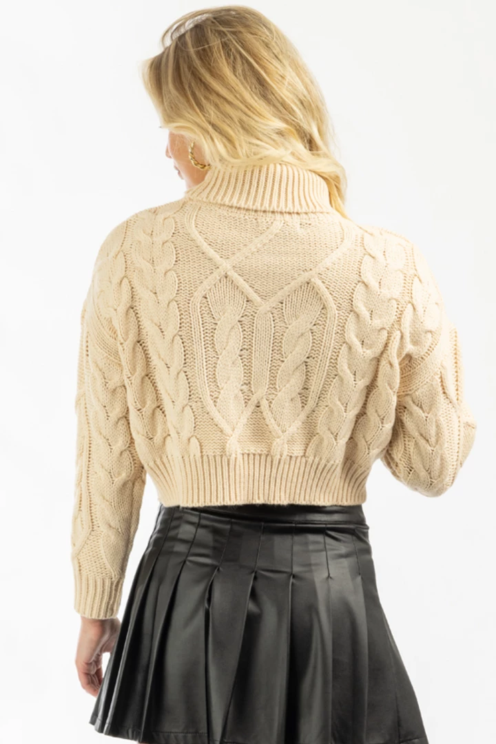 Turtleneck, Long sleeves, Cable knit, Slight crop, Relaxed fit