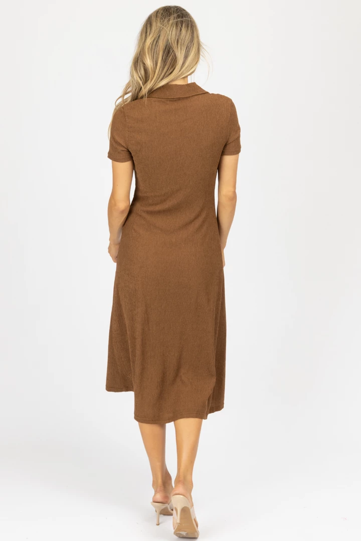 Collared, Asymmetrical button front, Short sleeves, Side slit