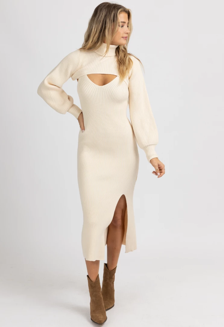 Sold together, Turtleneck, Long sleeves, Cropped, Knit sweater midi dress, Ribbed