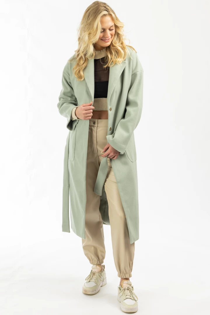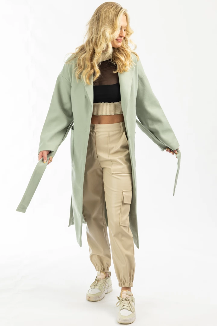 Self tie belt, Long sleeves, Collared, Open front, Trench coat, Oversized