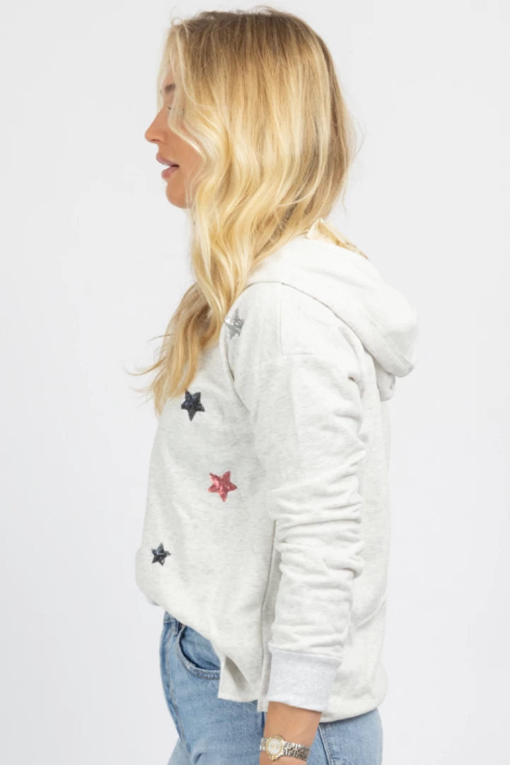 Sequined stars, Hooded, Fleece inside, Drawstring detail, Long sleeves