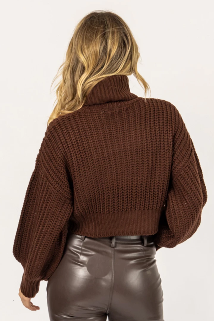 Turtleneck, Long sleeves, Cropped, Ribbed neck hem + cuffs