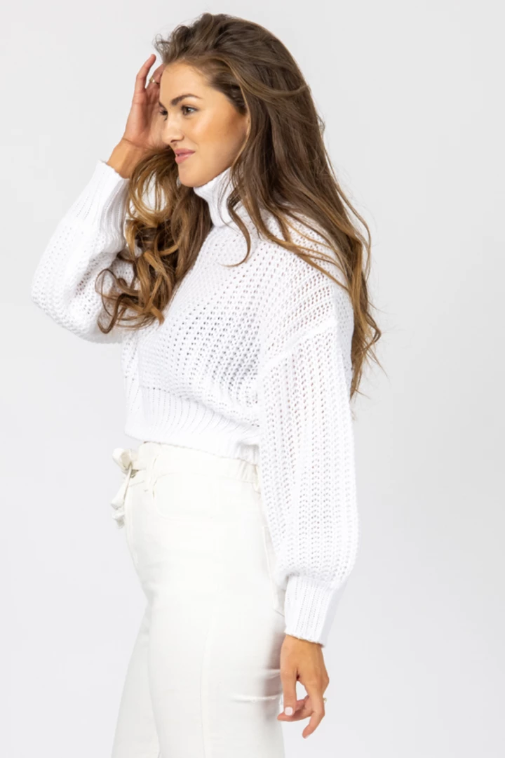 Turtleneck, Long sleeves, Cropped, Ribbed neck hem + cuffs