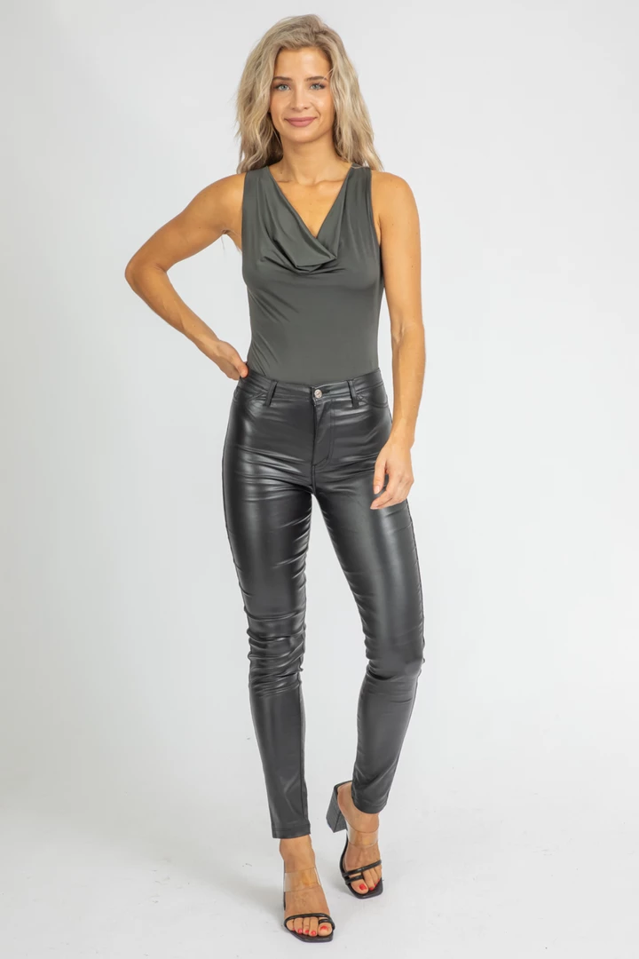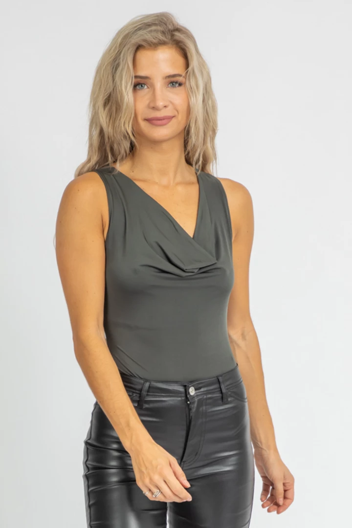 Double-lined, Cowl neck line, Wide straps, Snap closure, Cheeky bottom