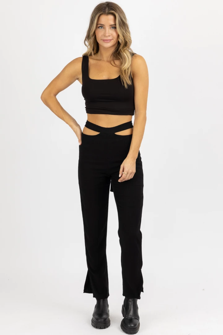 High rise, Cutout detail with back tie, Fit and flare, Stretch