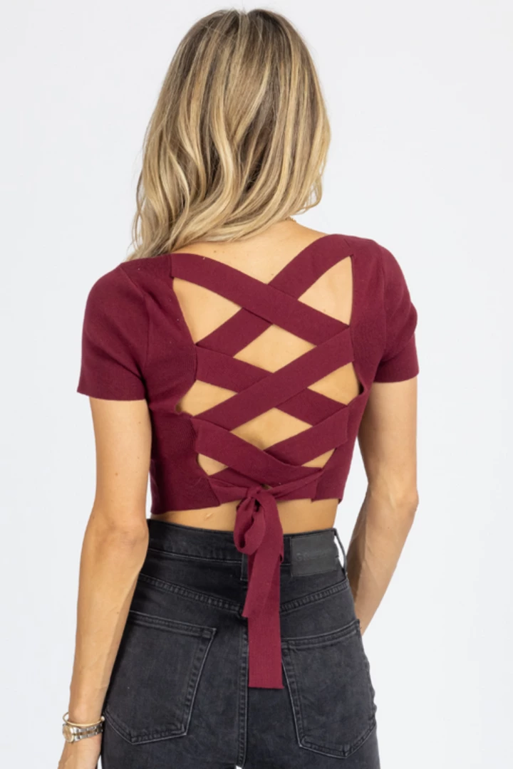 Cropped, Short sleeves, Knit, Tie back detail, Squareneckline