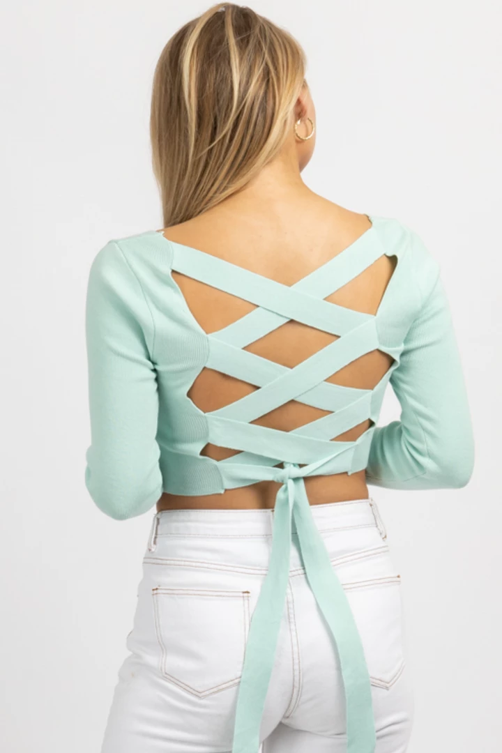 Long sleeves, Cropped, Knit, Squareneckline, Tie back