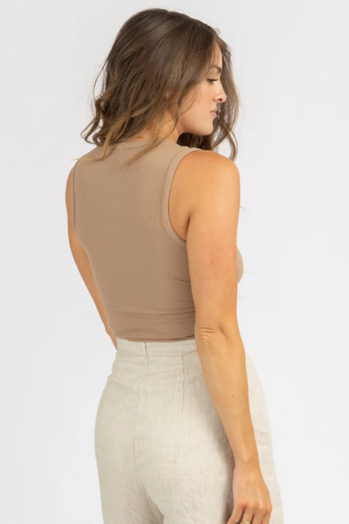 Ribbed, Round neck, Sleeveless, Snap bottom, Thong bottom