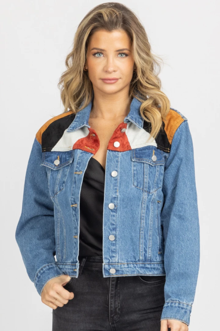 Relaxed fit, Button front, Suede patch, Collared, Long sleeves, Maroon + tan contast