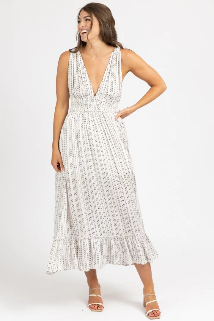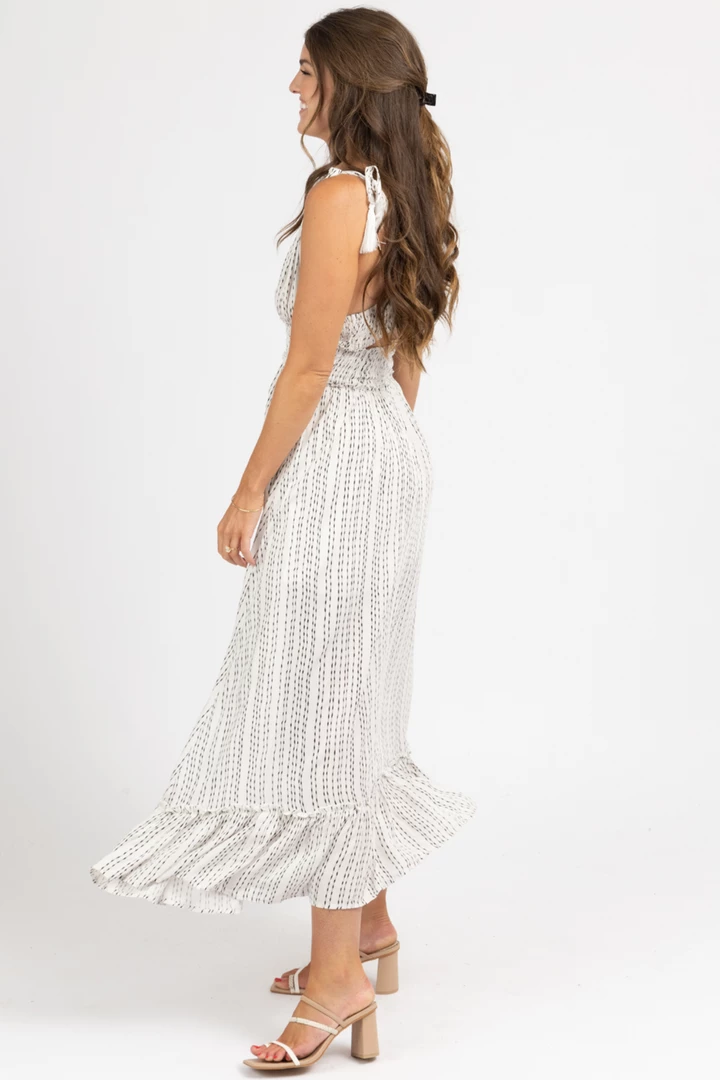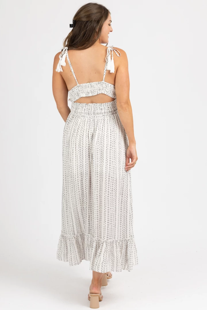 Open back detail, Wide straps, Dotted, Maxi length, Tassel tie strap detail