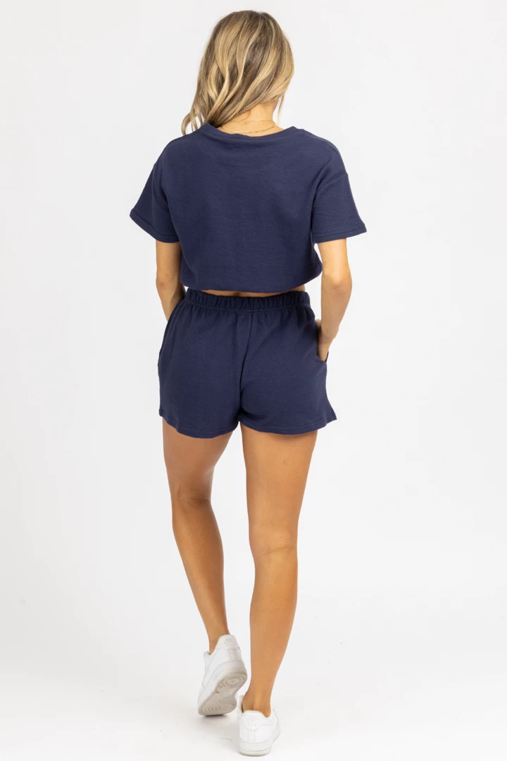 Sold together, Cropped top, Elastic waist, Tennis embroidered detail, Short sleeves