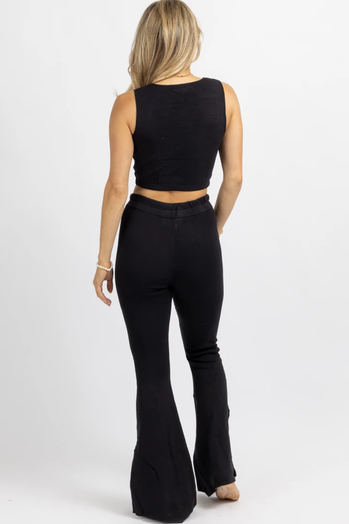 Sold together, High rise fit + flare pant with slit, Cropped tank, Stretch, Knit