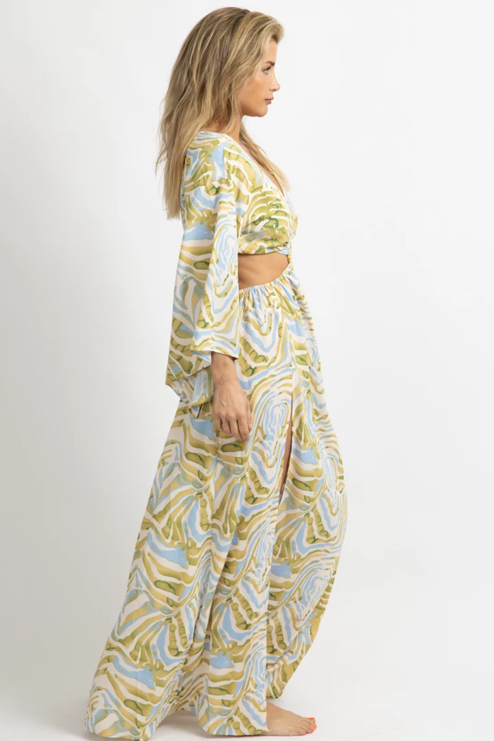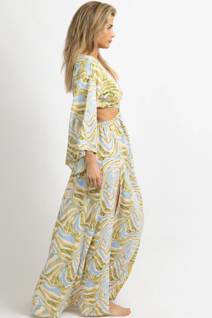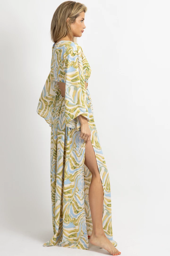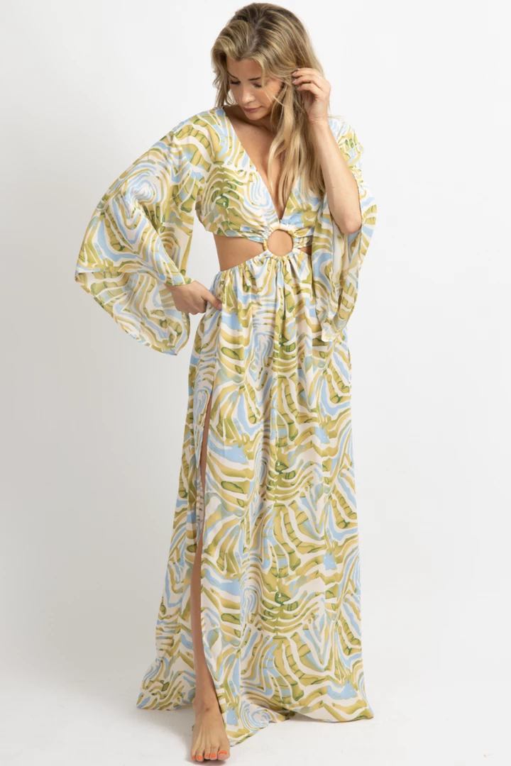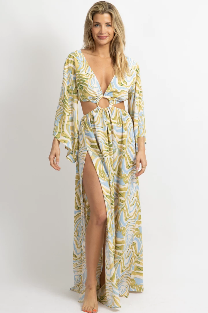 Maxi length, Side slits, O-ring, Cutouts, Zebra print, Flowy