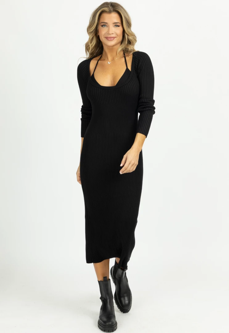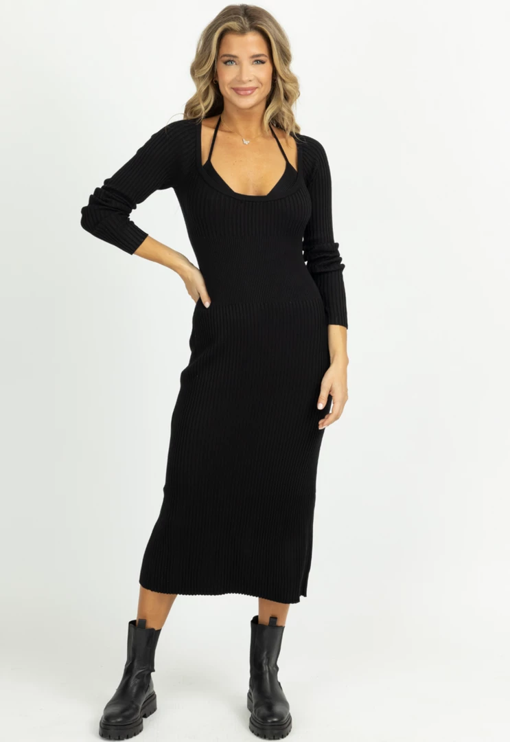 Layered knit bra top, Long sleeve, Midi length, Ribbed, Form fitting, Sold together