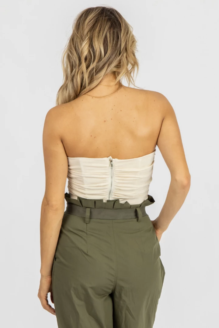 Fitted, Cropped, Lined, Zip back, Ruched sides