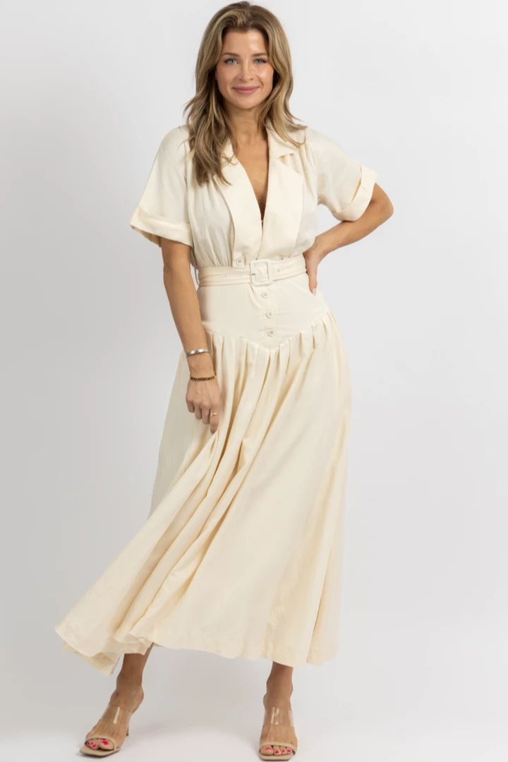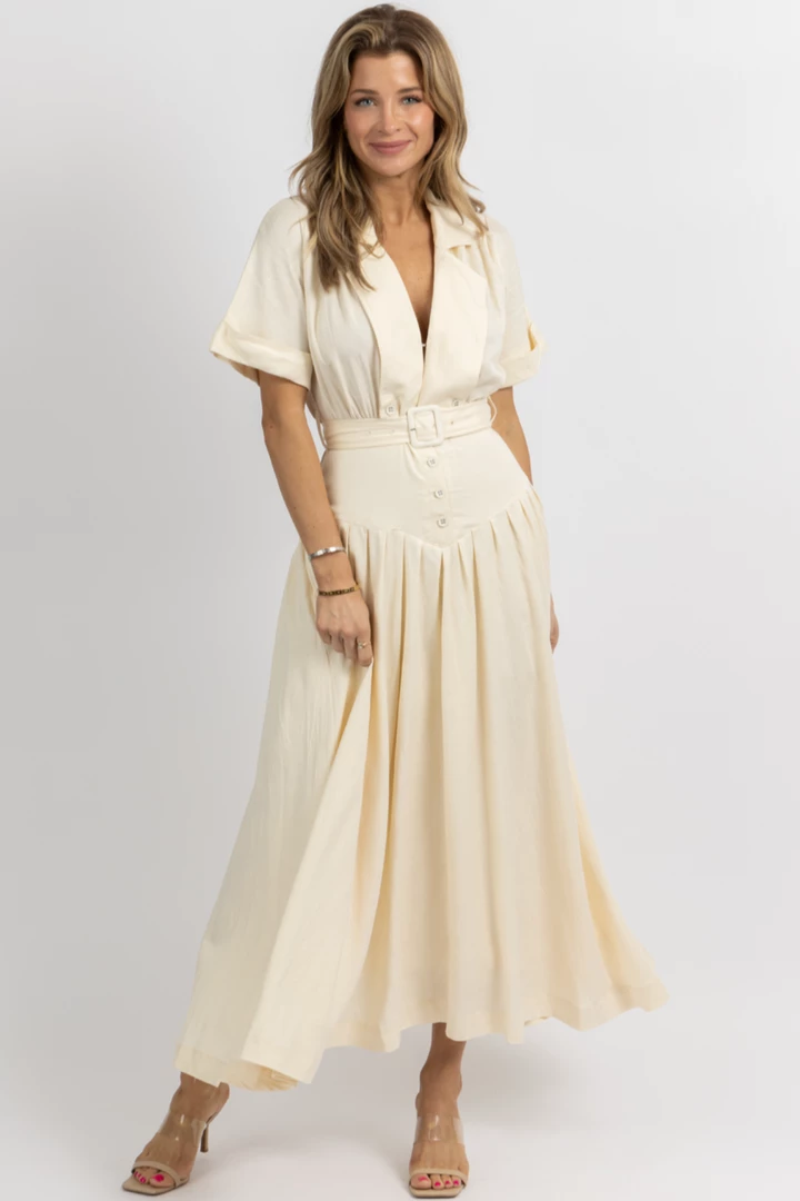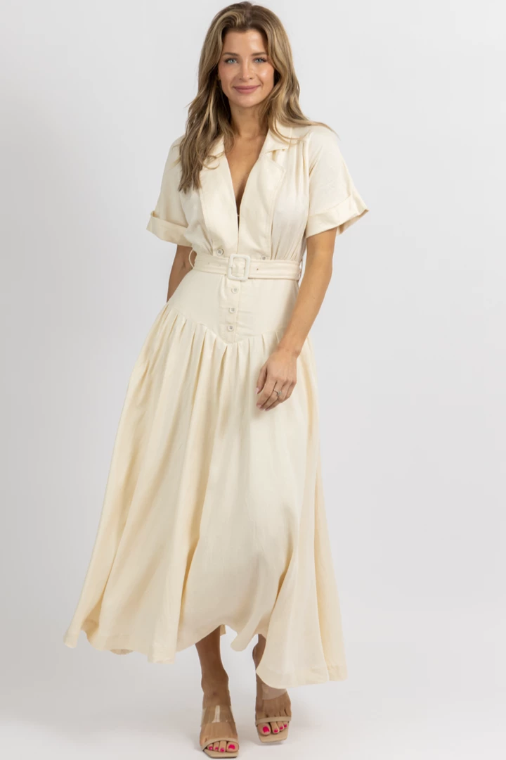 Collared, Corset, Short sleeve, Maxi length, Belted