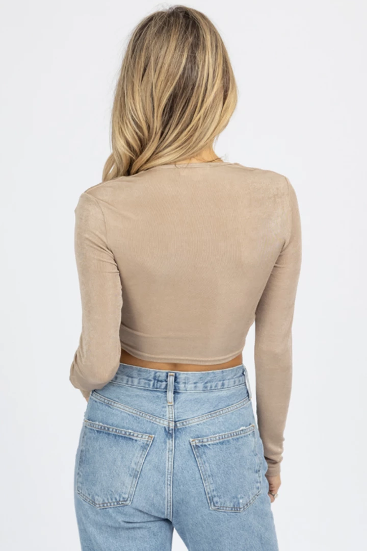 Long sleeves, Front twist detail, Cropped, Slinky material