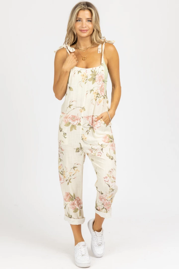 Relaxed fit, Adjustable straps, Linen, Side pockets, Sleeveless, Floral