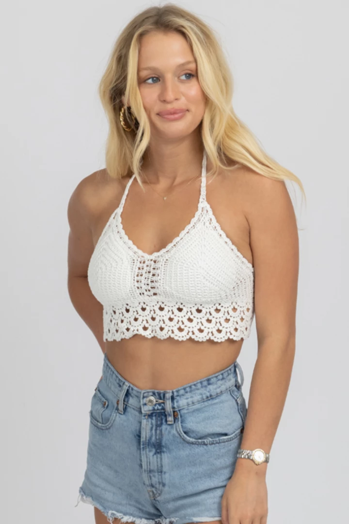 Knit, Scalloped hem, Tie back, Tie neck, Backless