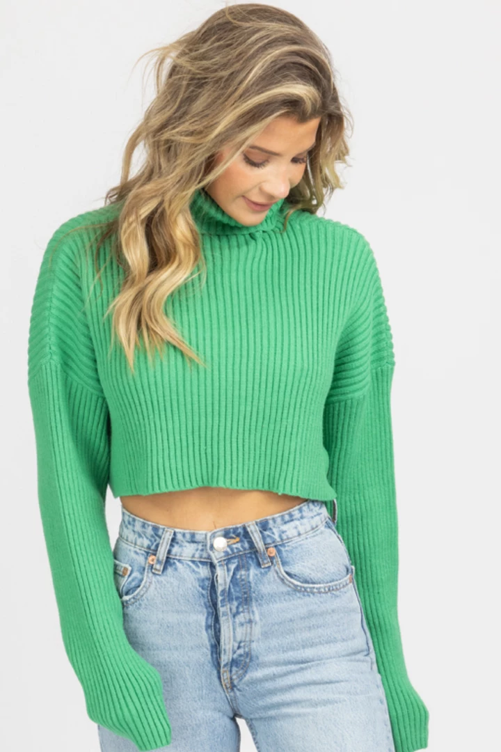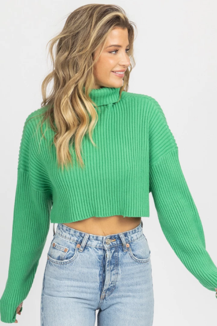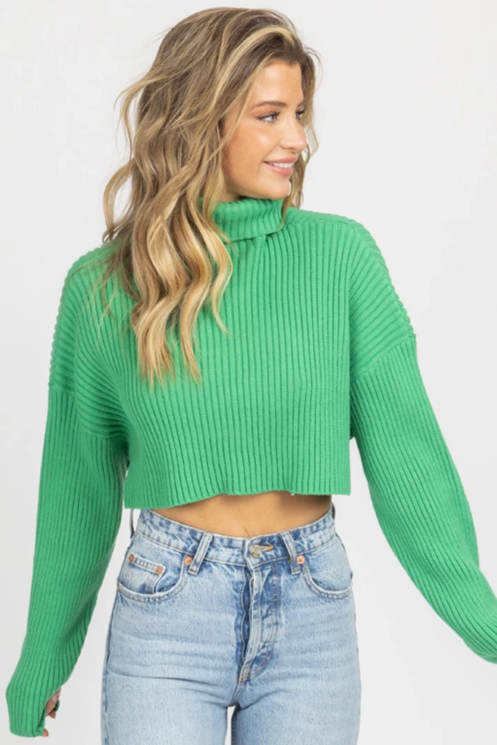 MIMOSA KELLY GREEN RIBBED TURTLENECK SWEATER