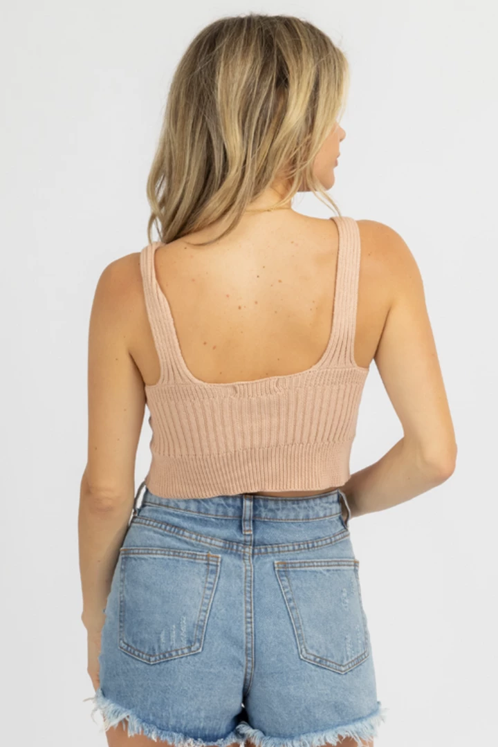 Knit, Ribbed, Sleeveless, V-neck, Ribbed hem detail